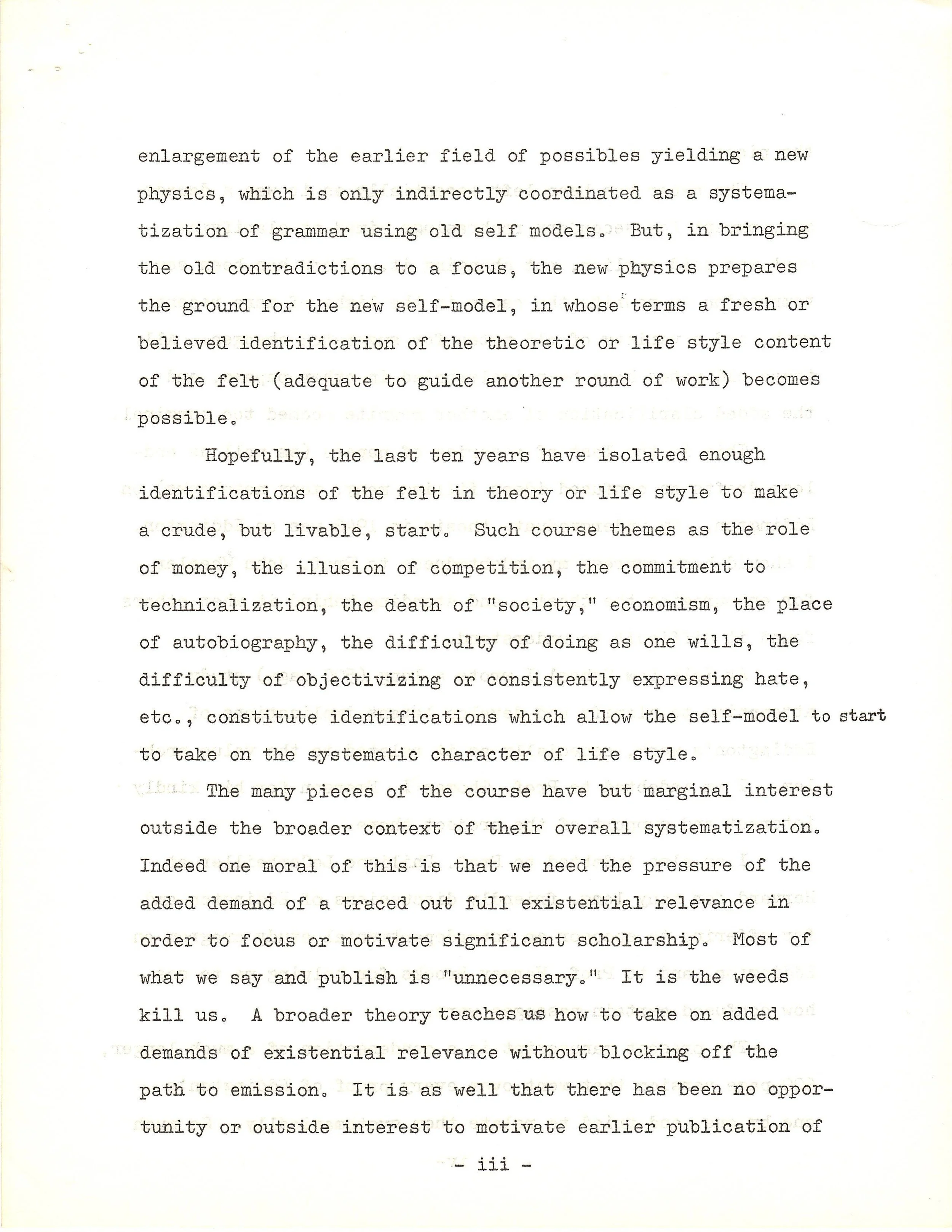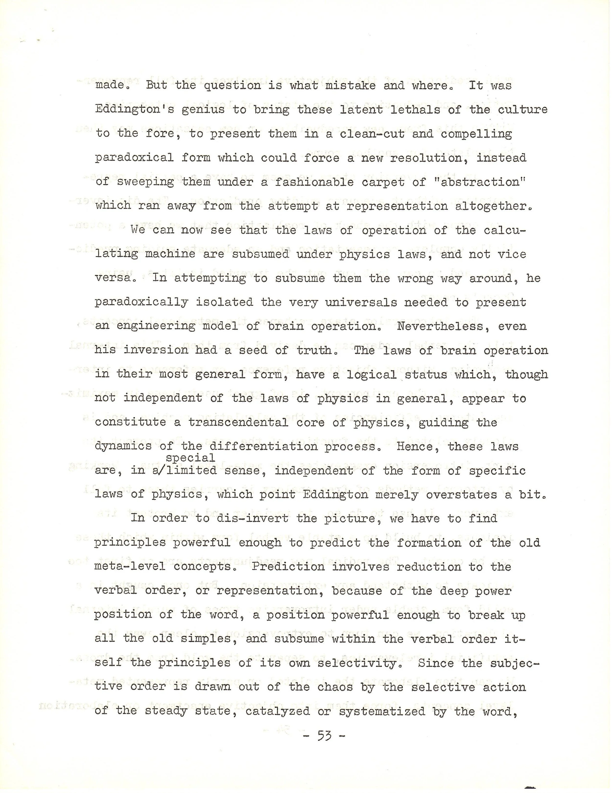 Memo for Wheeler: Link Syntax to Subjectivity, 1966