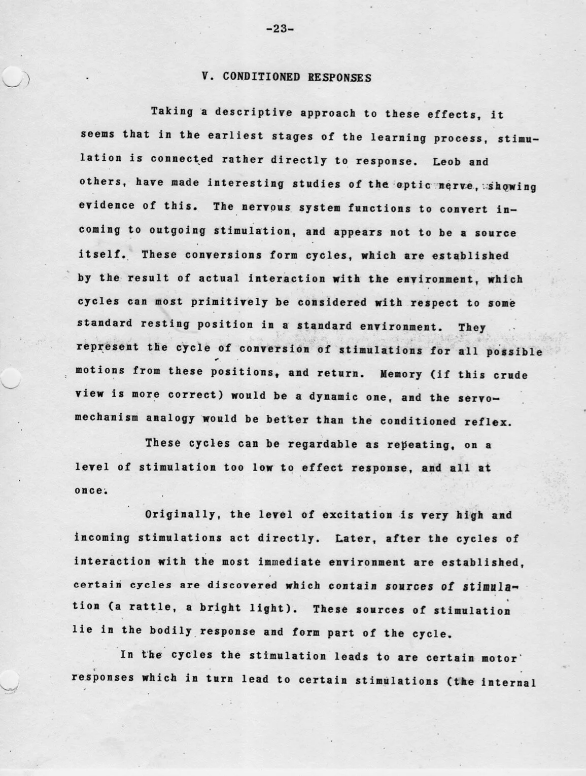 Outline of a Functional Model of the Nervous System, Putnam/Fuller 1964