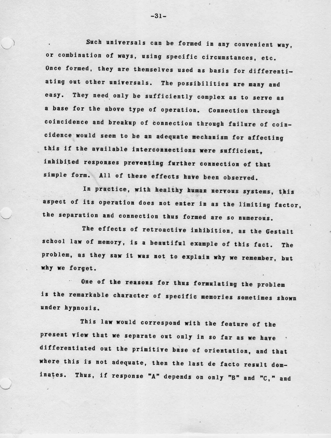Outline of a Functional Model of the Nervous System, Putnam 1963