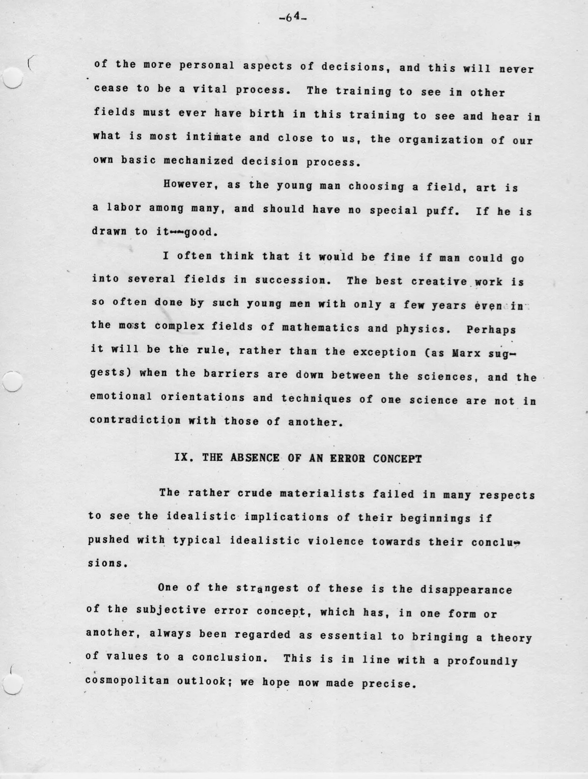 Memo for Wheeler: Link Syntax to Subjectivity, 1966